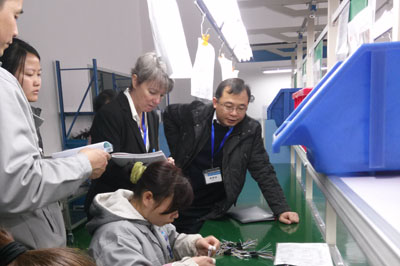 在品質(zhì)部經(jīng)理胡俊的陪同下,客戶參觀了各生產(chǎn)車間、倉儲現(xiàn)場、辦公區(qū)域等。胡經(jīng)理認真地向客戶介紹產(chǎn)品實現(xiàn)的每一道工序,并讓客戶親自動手檢驗。對關(guān)鍵過程尤為仔細,查閱作業(yè)指導(dǎo)書、過程檢驗記錄等??蛻粢卜浅UJ真地向我們了解各種產(chǎn)品的性能和用途,不停的記錄,并連聲稱贊“Very Good!”。