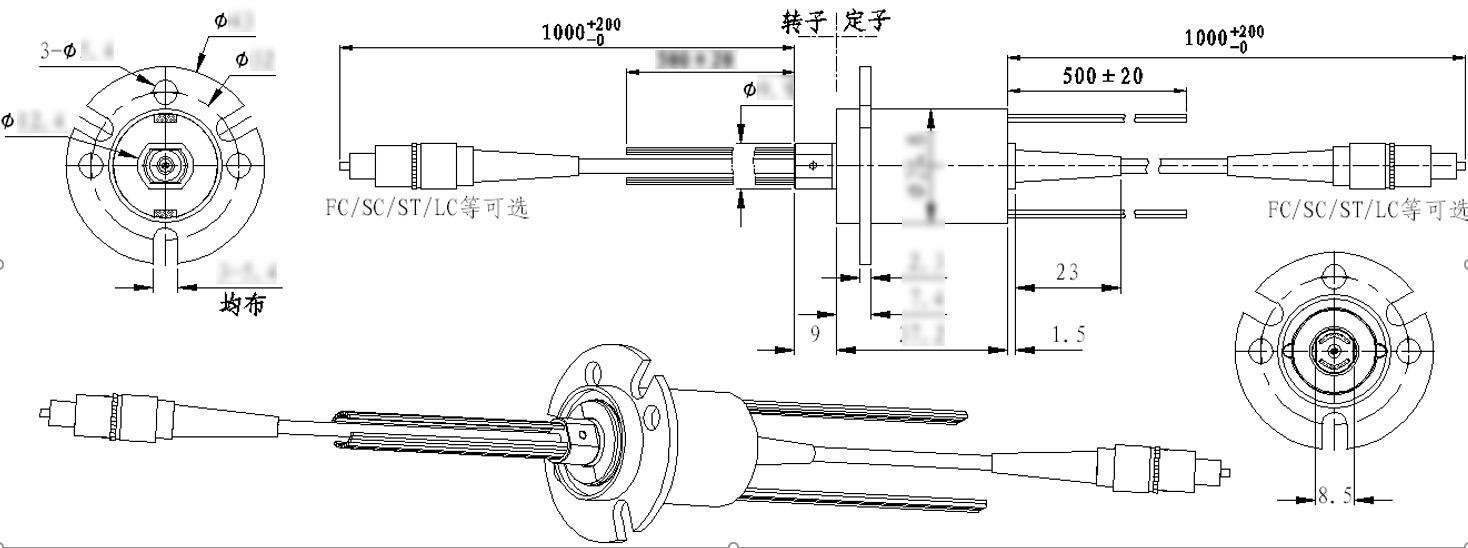 特點(diǎn):FOSR025-18-101B-001光電滑環(huán)包含一路光纖和18路電通道;