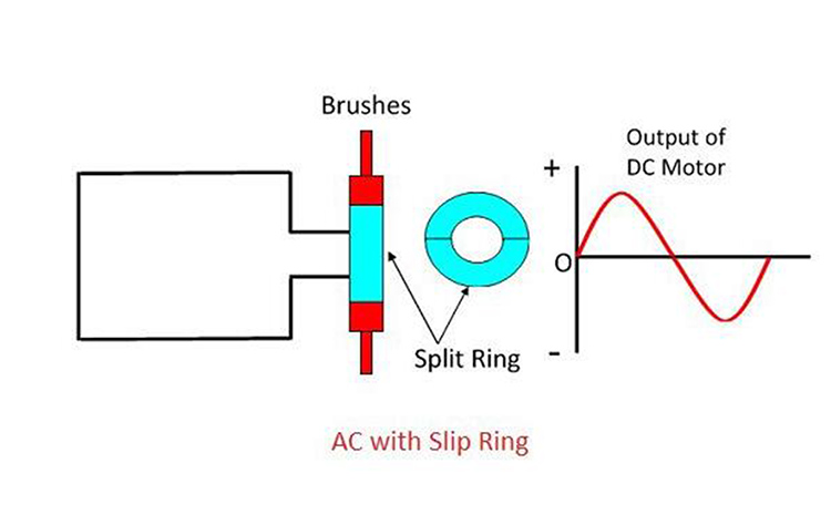 4.滑環(huán)通過稱為電刷的靜態(tài)設(shè)備收集來自直流發(fā)電機(jī)的功率,然后將電流傳遞到滑環(huán)?;h(huán)連接到電動(dòng)機(jī)的線圈,因此,功率從靜態(tài)傳遞到組件的旋轉(zhuǎn)部分,而開口環(huán)用于改變電流的極性。